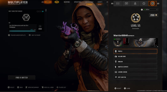 ใ๐ฃ BO6 / WZ4 META LOADOUTใโ Level 55 โข ๐ 50 Wins ๐ 13 Diamond + ๐ซ 13 Gold (CR56, Ladra, Kilo) ๐ฎ 195 Camos Unlocked โข ๐ค 17 Operators ๐ฒ Fully Linkable (Steam โข Battle.net โข PSN โข Xbox) | ๐งฉ Prestige 1 Ready