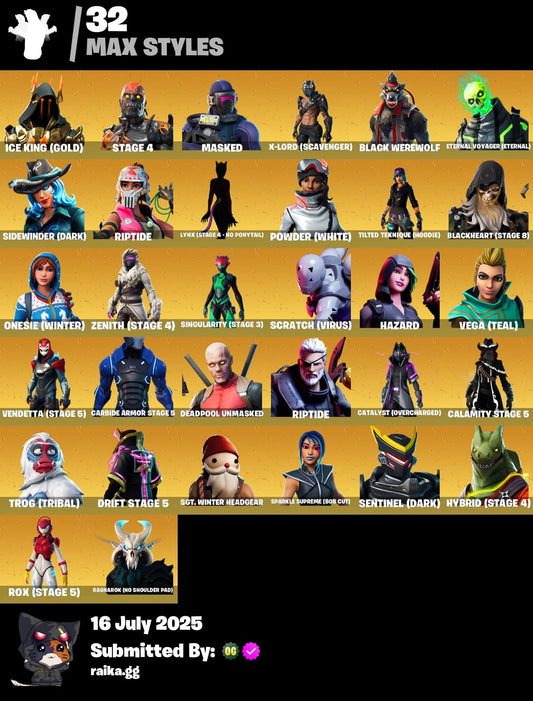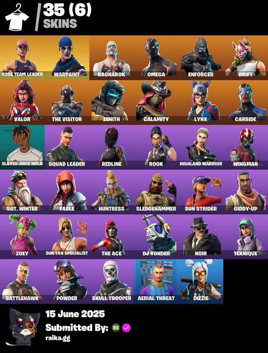 ⚡[PC/PSN/XBOX] 35 skins | OG STW | Ragnarok | Omega | Enforcer | Drift | Valor | The Visitor | Zenith | Calamity | Lynx | Carbide | Slayer Juice WRLD | 105 VB