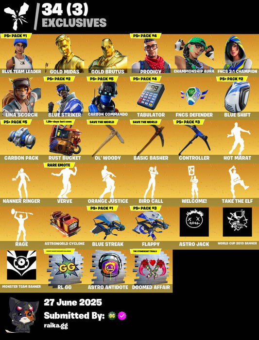[PC/PSN/XBOX] 108 skins | Gold Midas | Gold Brutus | Gold Meowscles | Rust Bucket | Verve | Rage | Astroworld Cyclone | Monster Team Banner | 1100 VB